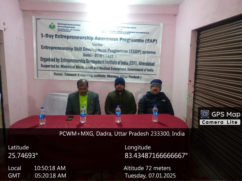 दिनांक 07 जनवरी 2025 को “संपर्क ई- लर्निंग इंस्टिट्यूट सिखड़ी गाजीपुर उत्तर प्रदेश” के परिसर में 1-दिवसीय उद्यम जागरूकता प्रोग्राम (1-Day Entrepreneurship Awareness Programme)(EAP) का आयोजन किया गया |
